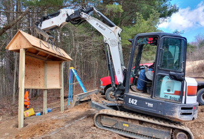 Ridgway Township developed the parking area for the trailhead in March of 2024. We built an information kiosk in the same style of the one at Laurel Mill in April of 2024. An engineering firm was selected to create a master plan in the fall of 2024 and they completed the field work in May of 2025. The master plan was completed in the summer of 2025 and the first phase of construction went out to bid in the fall of 2025. A contractor was chosen and work on phase one will start in the spring of 2026!