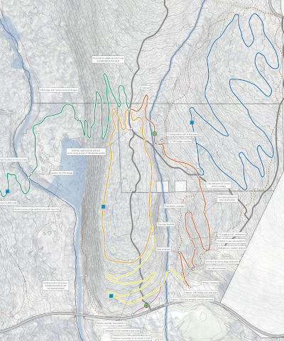 There will be a series of loops, ranging from easy to difficult. A switchback trail will drop down into the valley and eventually cross Big Mill Creek and join the Laurel Mill Trails in the Allegheny National Forest.